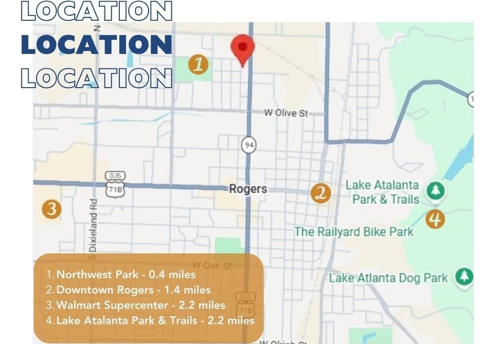 Build your dream home on this cleared, ready-to-build lot in an established Rogers neighborhood! With all utilities on site—including water, electricity, gas, and city sewer—this property offers the convenience of in-town living with easy access to everything Northwest Arkansas has to offer. The lot features a 3-inch water line at the rear of the property and an 8-inch sewer line at the street, ensuring robust infrastructure for your new construction. Currently zoned T4.1 with future zoning U-NH, this property provides flexibility for residential development. Located just 0.4 miles from Northwest Park and 2.2 miles from the scenic Lake Atalanta Park & Trails, you'll enjoy outdoor recreation right at your doorstep. Downtown Rogers is only 1.4 miles away, and everyday conveniences like Walmart Supercenter are within 2.2 miles. Don't miss this rare opportunity to build in a desirable Rogers location!