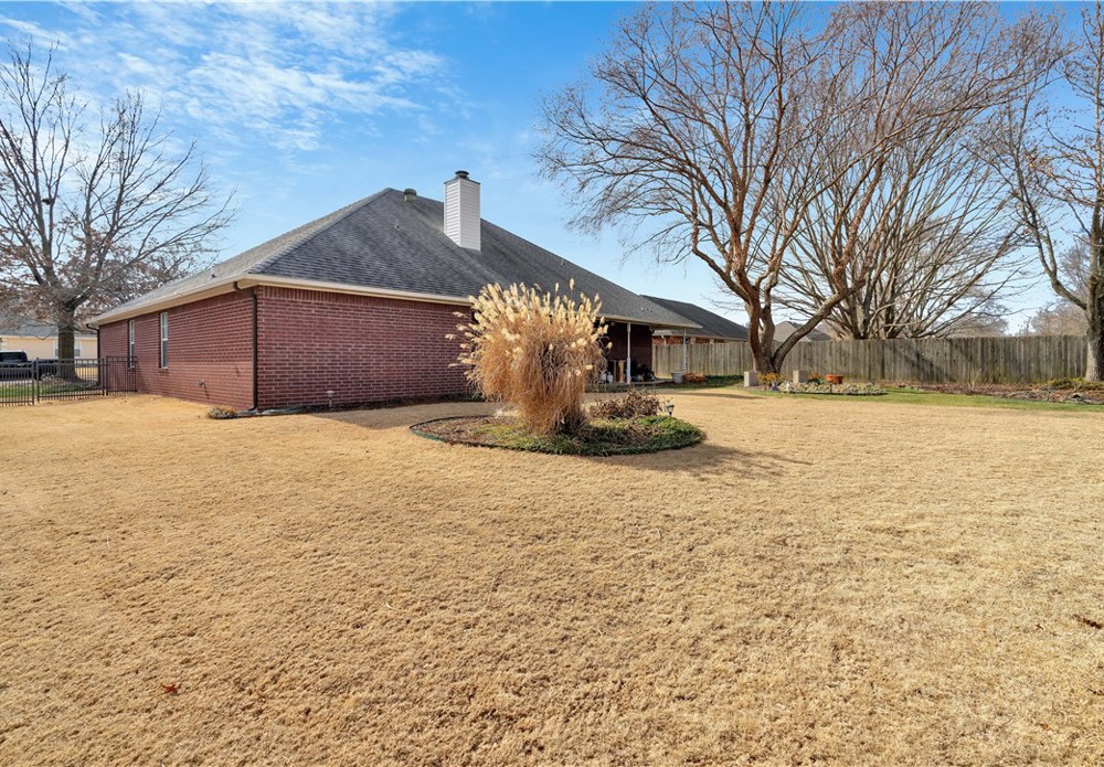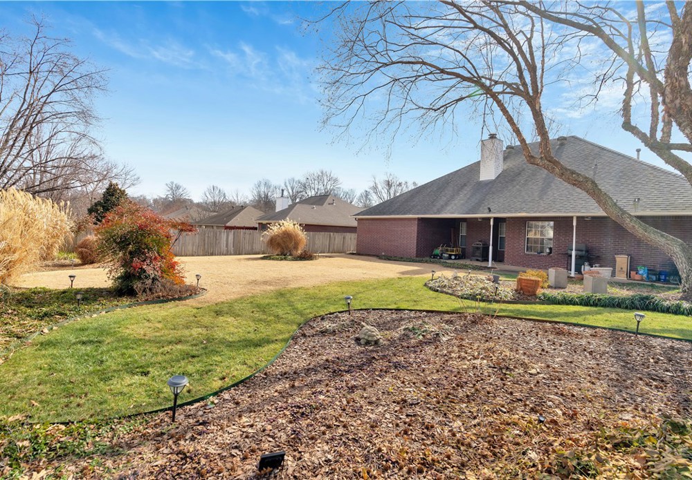 Beautiful 3-bedroom, 2-bath home located in the highly desirable Bridgeport neighborhood. This well-designed layout offers a formal dining room and a dedicated office, perfect for working from home or flex space. The living room features a cozy gas-log fireplace and flows seamlessly into the kitchen, which includes a large pantry and plenty of storage. Step outside to enjoy the covered back patio overlooking a fully fenced backyard, ideal for relaxing or entertaining. The level, landscaped lot adds to the home’s curb appeal and functionality. Conveniently located close to shopping, dining, trails, and all that Fayetteville has to offer, this home combines comfort, space, and an unbeatable location.